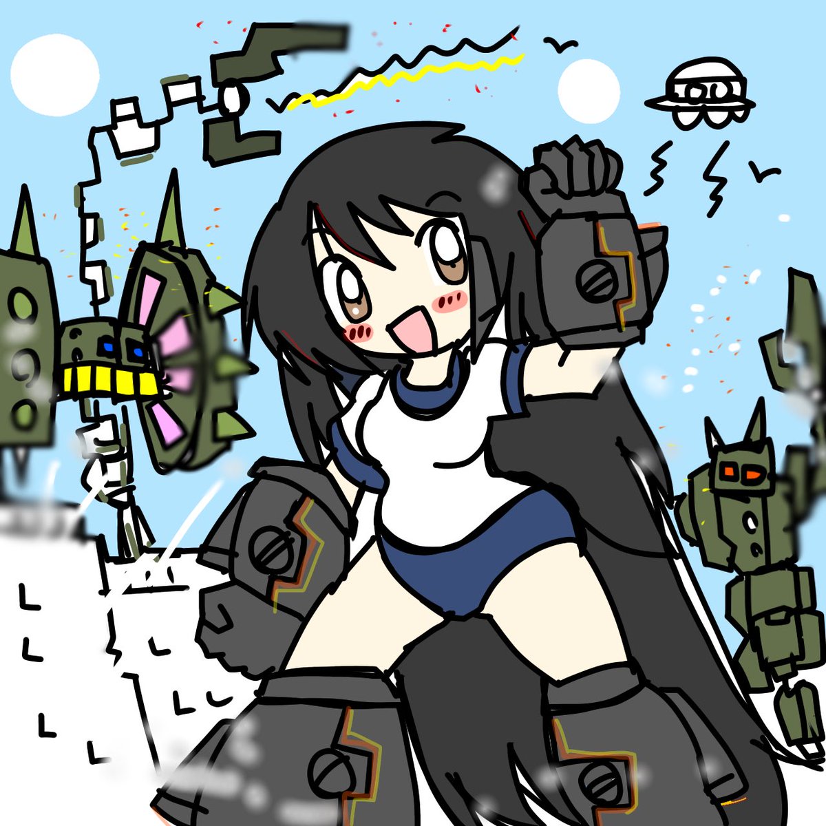 こんにちは! 今日も暑いかと思って描きましたが、あいにく曇り空ですね! すぷらっしゅ! #自分の絵柄の特徴あげてもらってそれを全部封印した絵を描く ↑新たな絵柄を開発したいと思います 何かありましたら