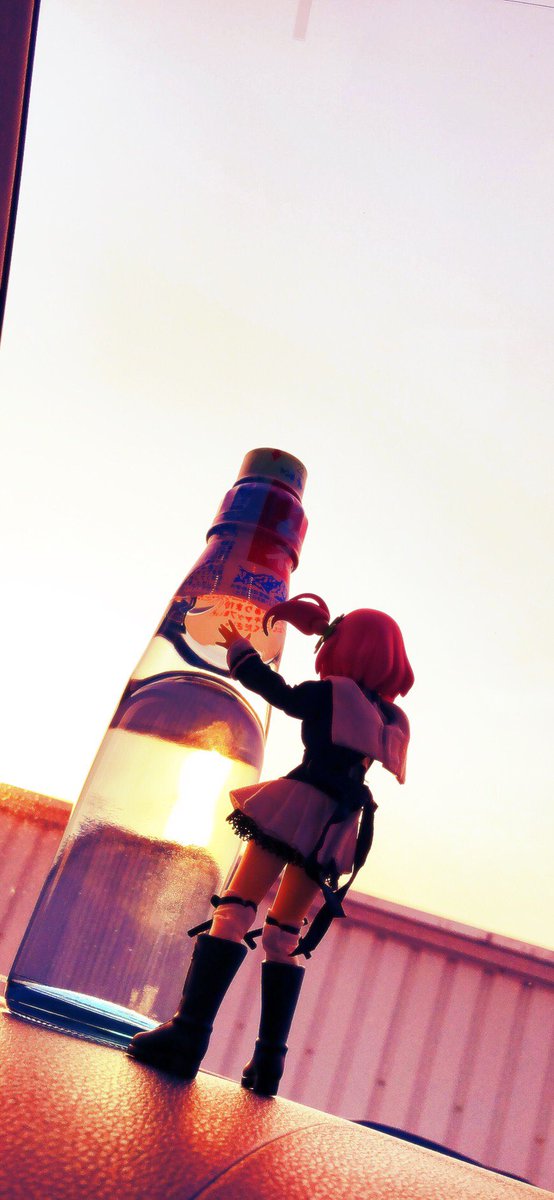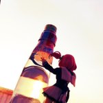 任務後に夕陽をバックに巨大ラムネと共に佇む一柳隊長 #アサルトリリィドール部 #アサルトリリィ