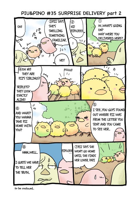 PIU & PINO 46(English translation)🐥 #cartoon #CartoonArt #comicstrip #漫画 #漫画がよめるハッシュタグ #イラスト #illustlation #漫画好きな人と繋がりたい twitter.com/eimi_note/stat…