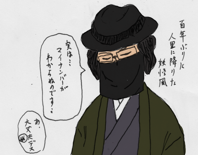 #みなさん去年の今頃はどんな絵描いてましたか 去年の今頃は確定申告をしていたようです。マイナンバーがわからなくて空欄のまま持ってったら、マイナンバーなくてもいいと言われました 人間界に不慣れな妖怪みたいな見た目だったせいかもしれません あと、哀傷のヒトガタ絶賛執筆中だったようです。