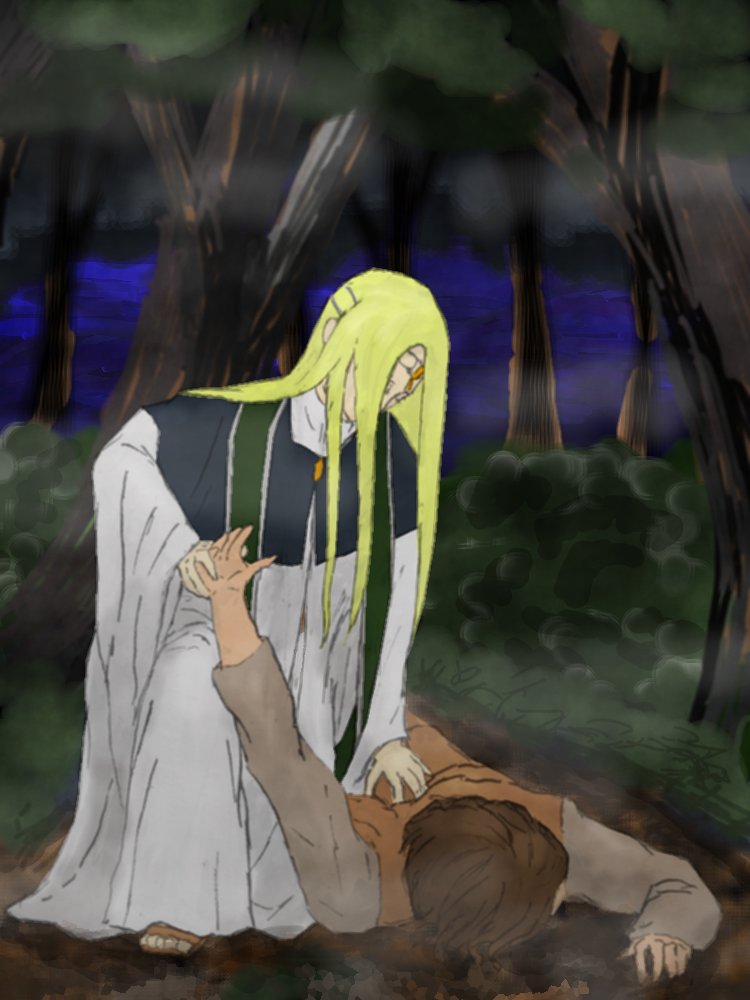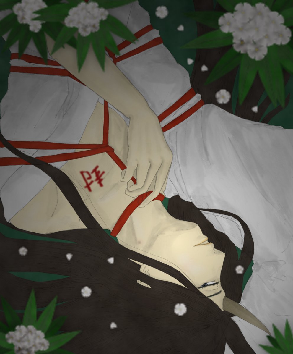 『拘引』 (永流堂奇譚第九話「哀傷のヒトガタ」イメージ) 11RT課題「デジタルで本気出す」用に描きました 「本気」といわれてもどうしたものかと悩んだ結果、とりあえず「全てデジタルで、描けるもの描けるだけ描く」という感じで… 服着てるから健全! twitter.com/eisenmond/stat…