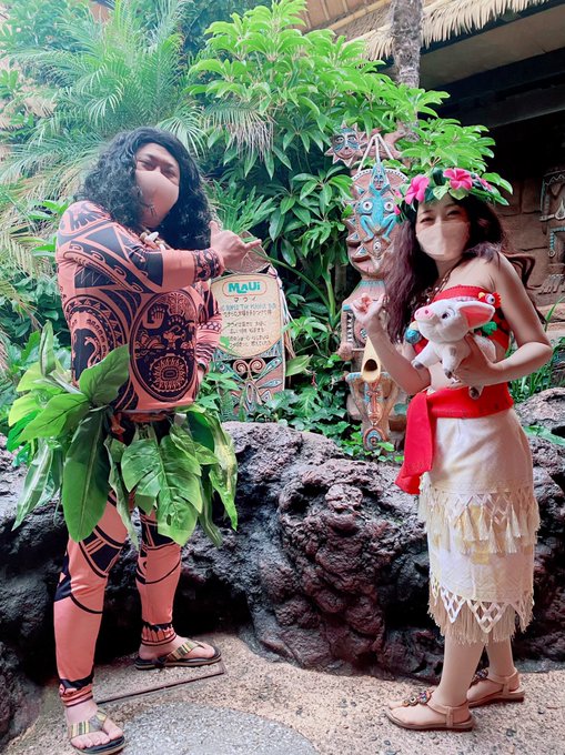 今年のDハロもマウイやれて楽しかった🤙🌺🪝またやりたいなぁ。マウイだって言われると照れるけど嬉しい😊 あと実はテフィティの心と入れ物のネックレスは自作だったりします☺️ #Dハロ仮装2022 #Dハロ仮装 #Dハロ2022