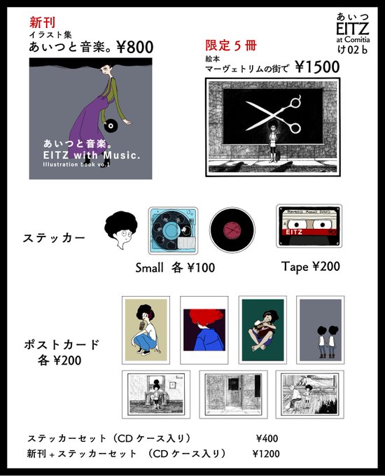 9/4【コミティア141】 販売物の詳細です。 ◉既刊の絵本は、冊数限定となっております。 ◉新刊のイラスト集は、ステッカーとのセット販売もあります。 #コミティア141 #COMITIA141 #コミティアお品書き