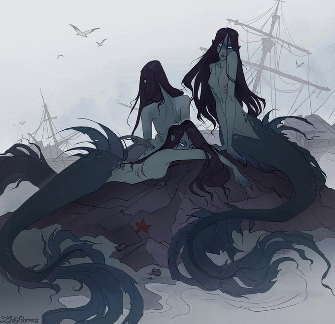 Another take on #mermay by IrenHorrors - these are not friendly mermaids, but they sure are beautiful. #fantasyart Merrows by IrenHorrors deviantart.com/irenhorrors/ar…