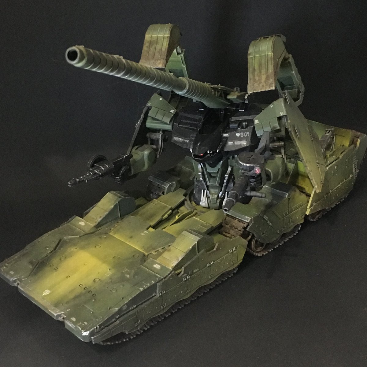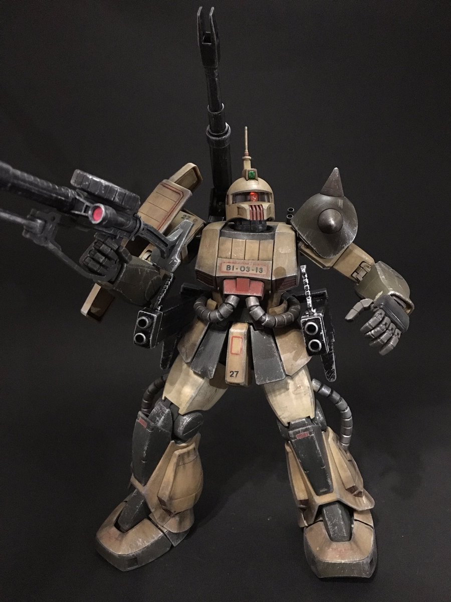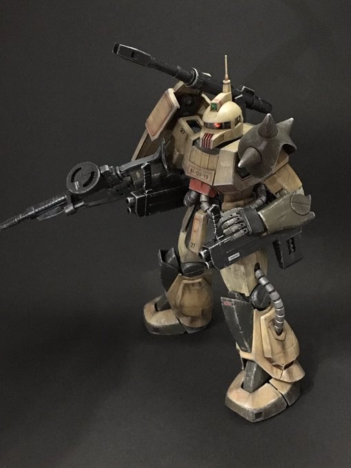 MGザクキャノンついに完成(゚∀゚) 泥くさい機体のイメージ通りウェザリング出来たかな(´・∀・`) #ガンプラ #ガンプラの画像を貼るとRTされると聞いて #ガンプラビルダー大フォロー祭り