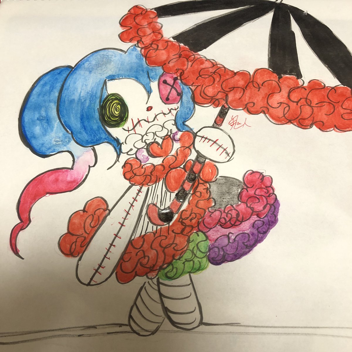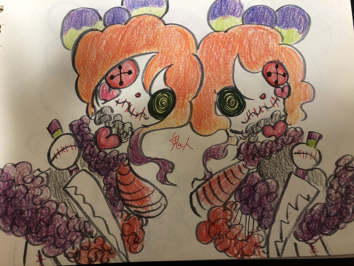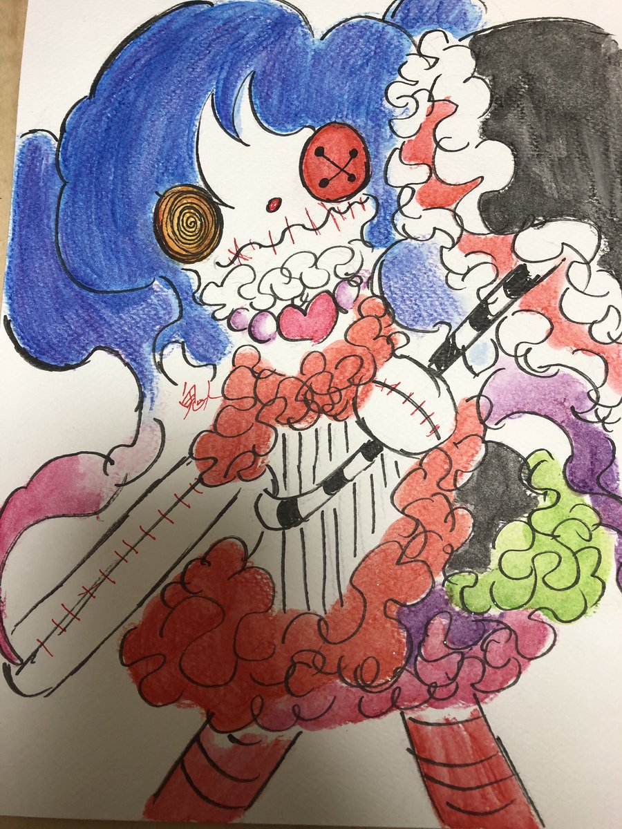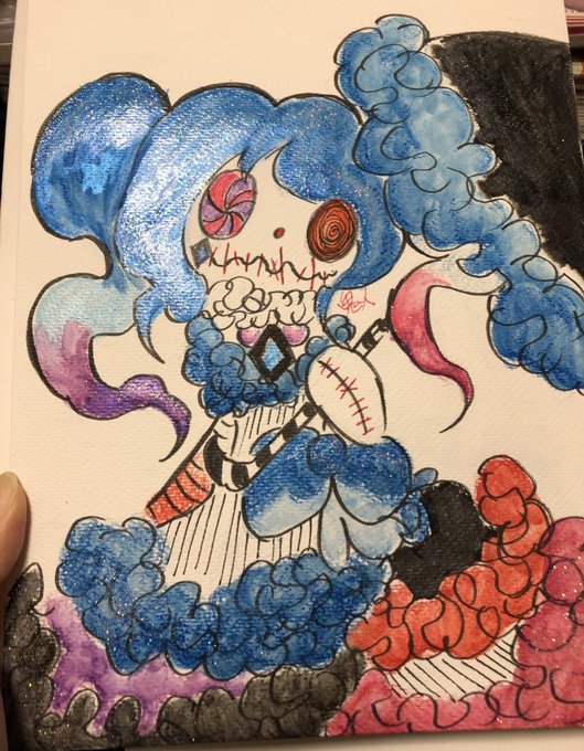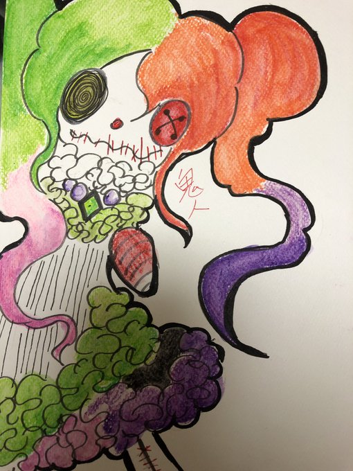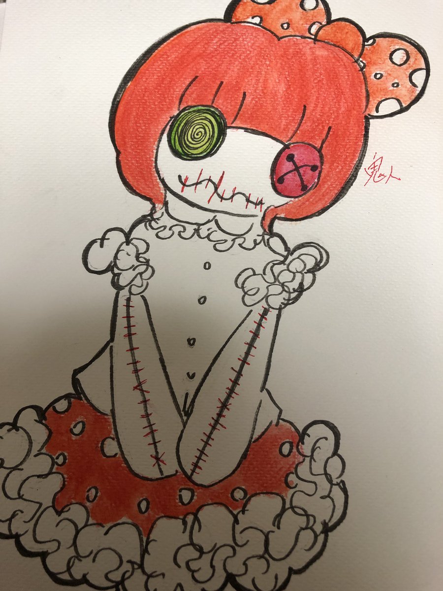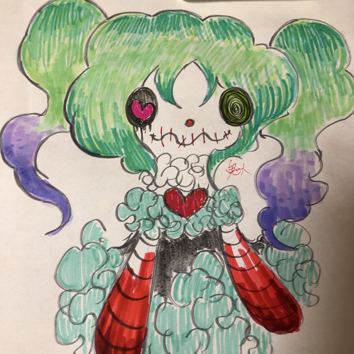 #作品を載せて自分の作品を知ってもらおう 縫い目とツインテールな子を描いてます。ぬいぐるみも作ります。ハロウィンの人と覚えてください