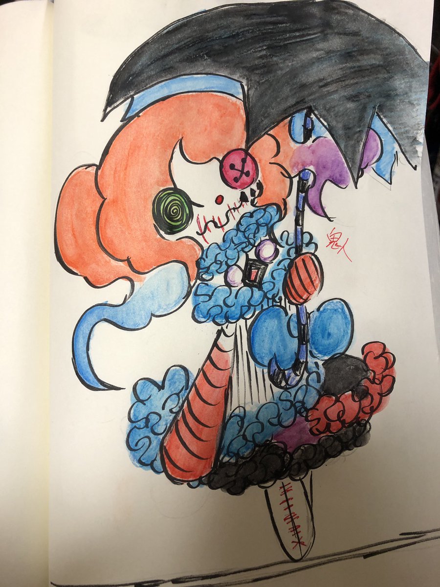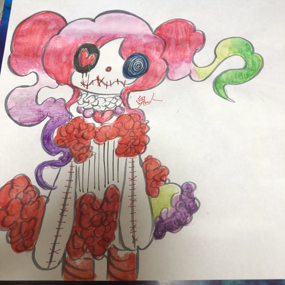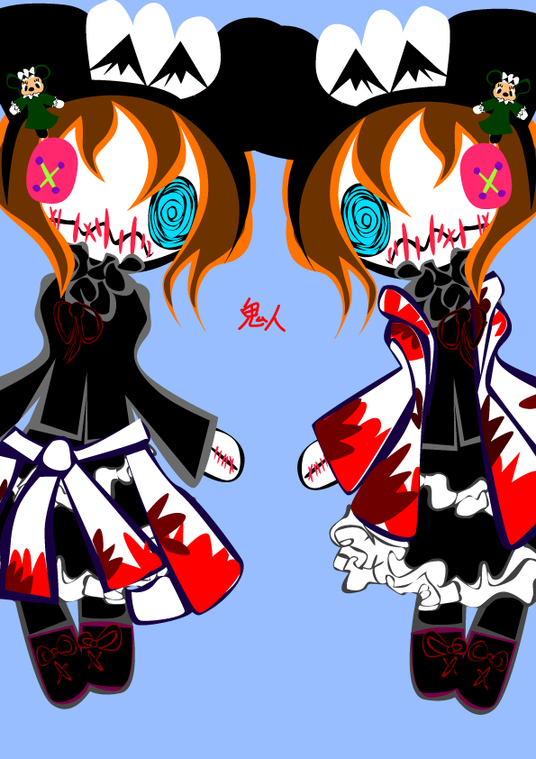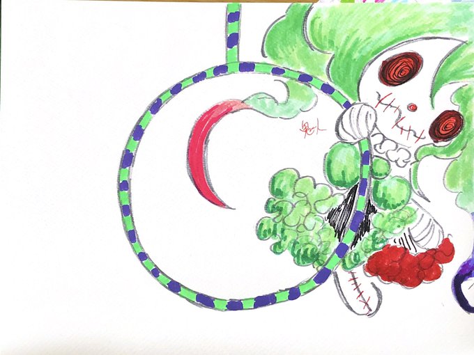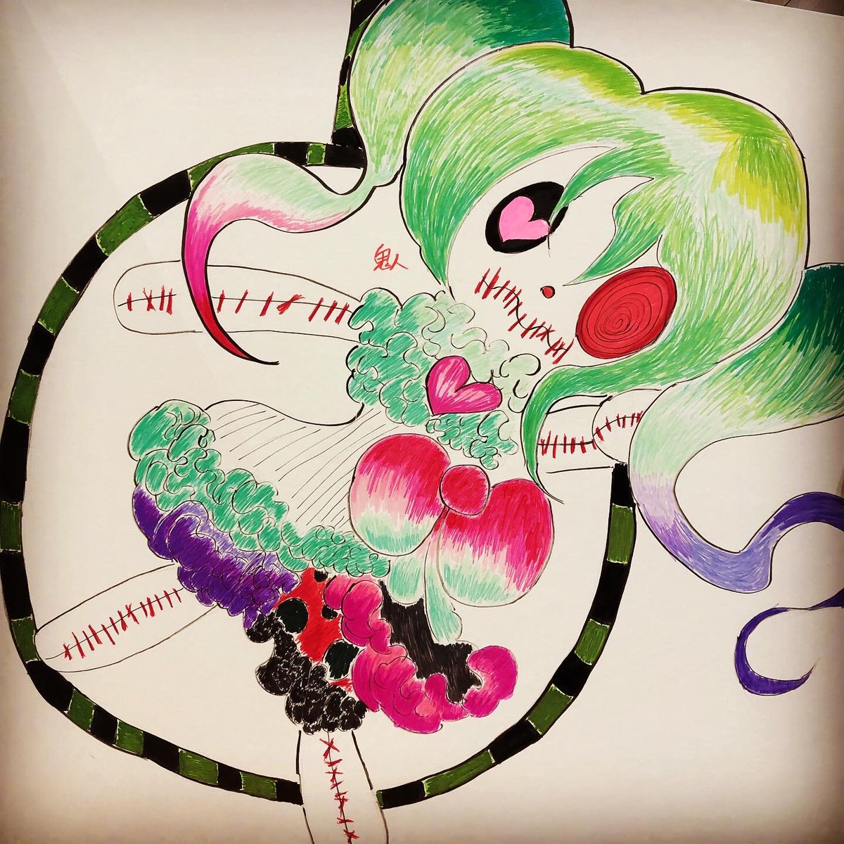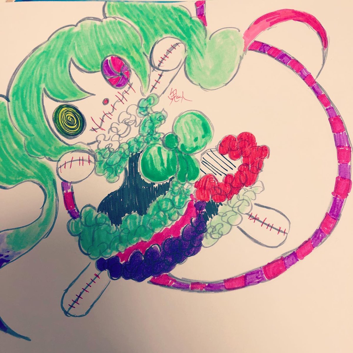 #作品を載せて自分の作品を知ってもらおう 縫い目とツインテールな子を描いてます。ぬいぐるみも作ります。ハロウィンの人と覚えてください