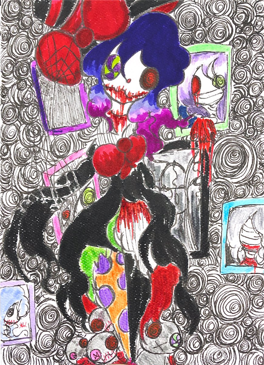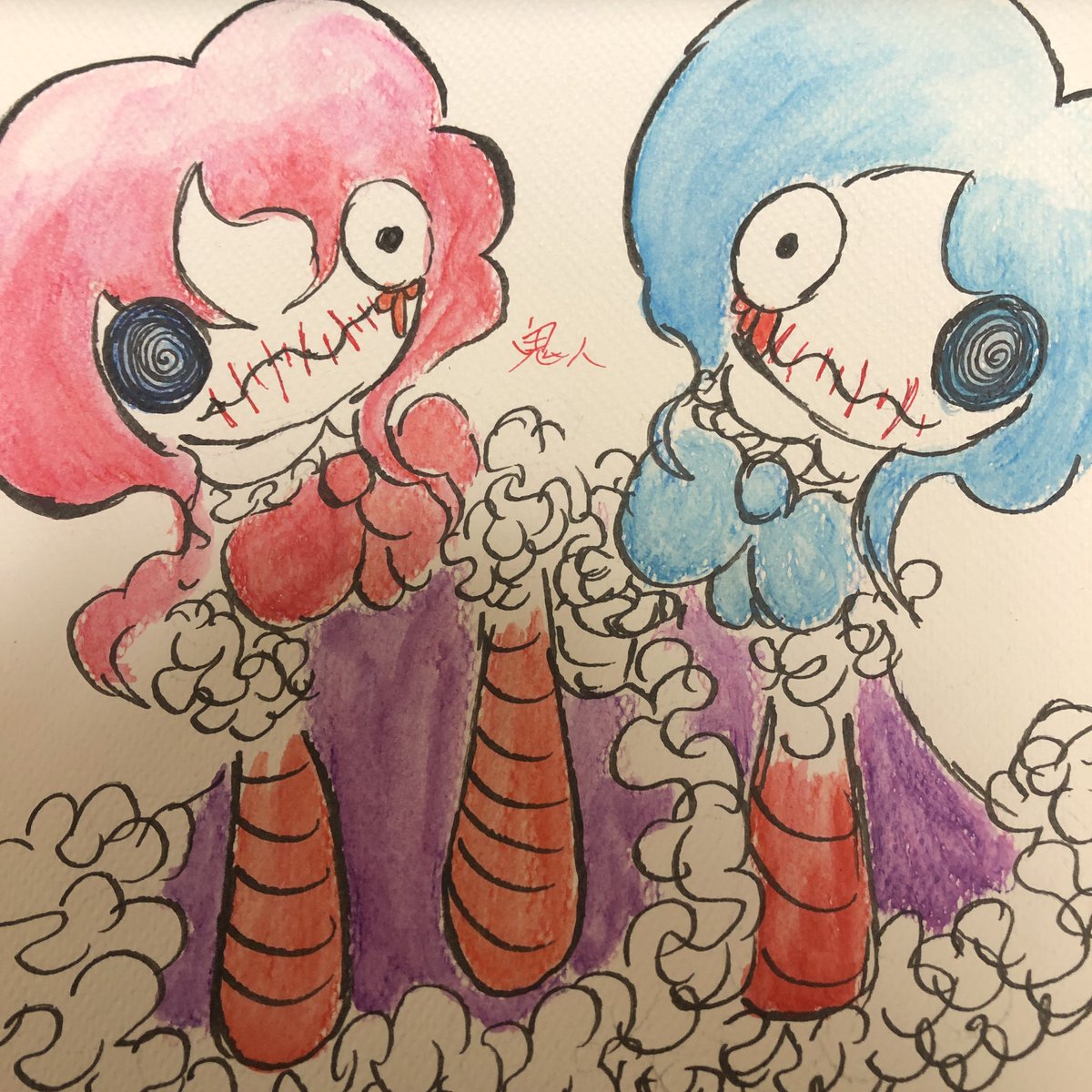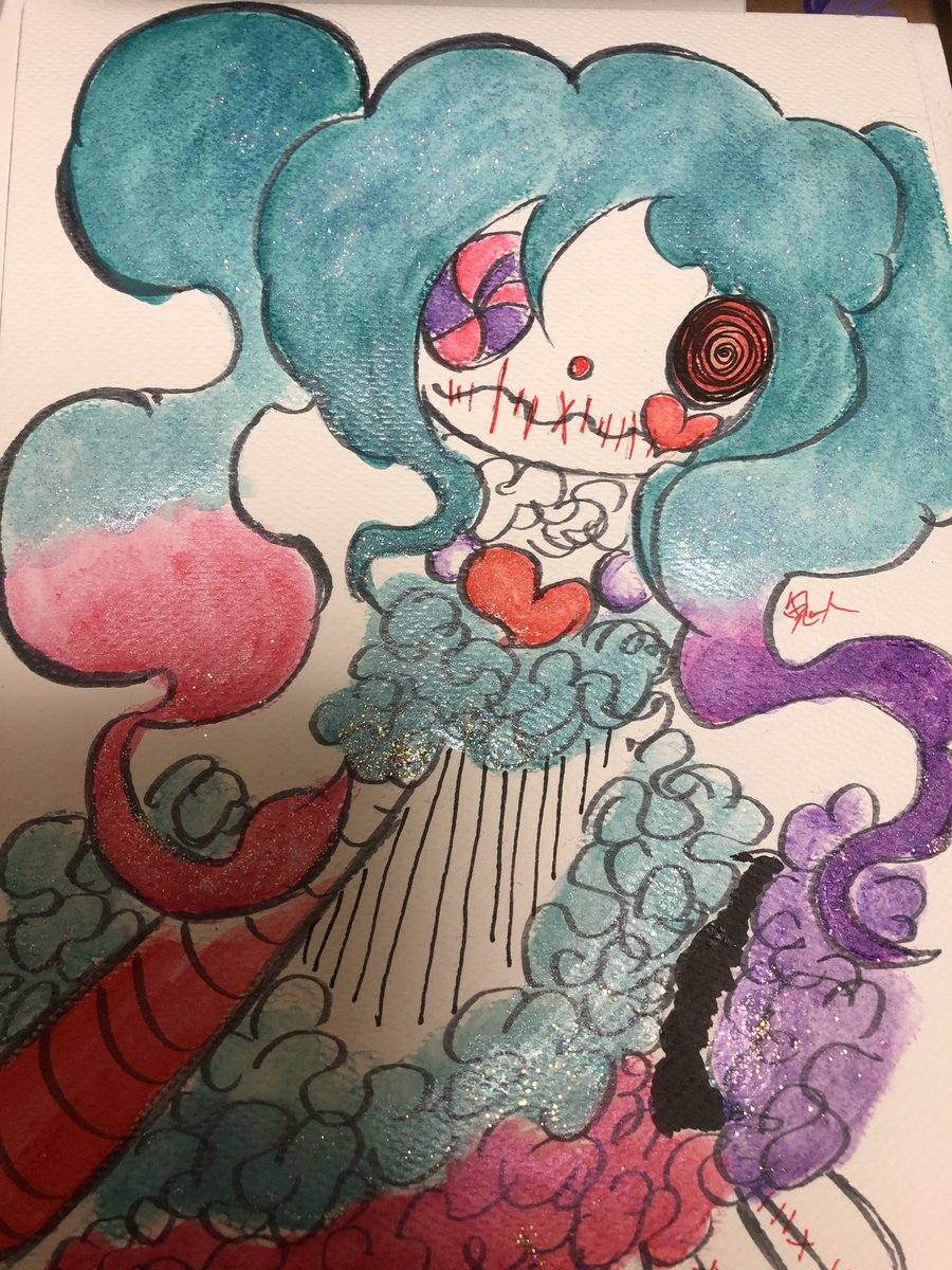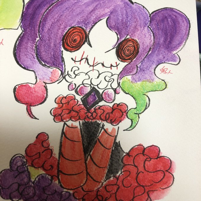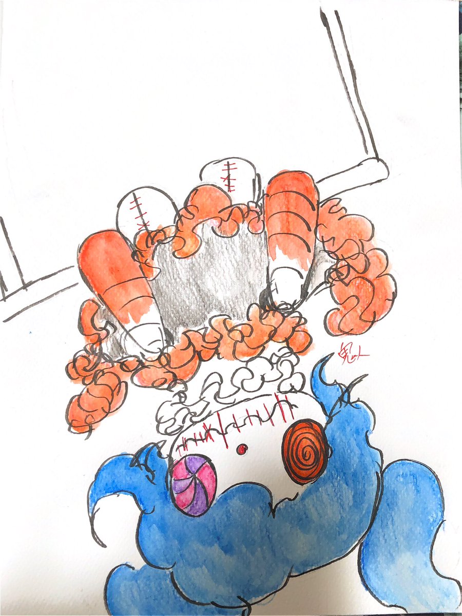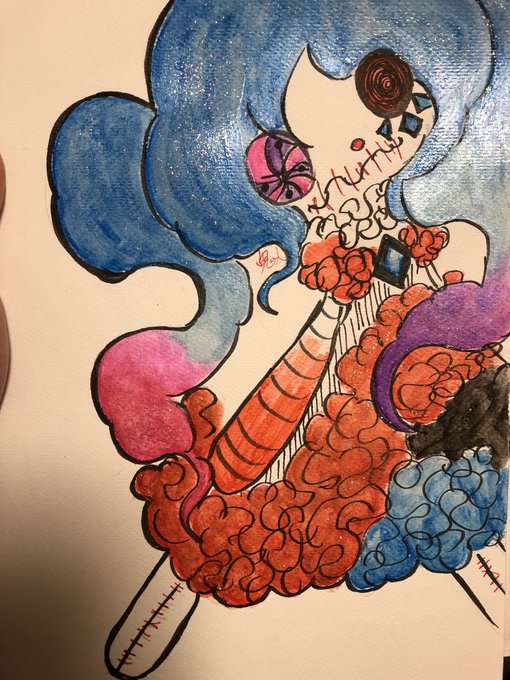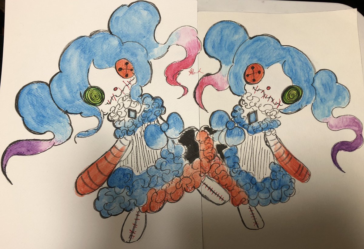 #作品を載せて自分の作品を知ってもらおう 縫い目とツインテールな子を描いてます。ぬいぐるみも作ります。ハロウィンの人と覚えてください