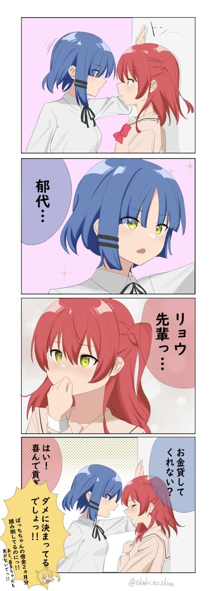 1 5 リョウ喜多4コマ 「壁ドン」(※タップ推奨) #ぼっち・ざ・ろっく #ぼざろおえかき 23/04/20 21:19