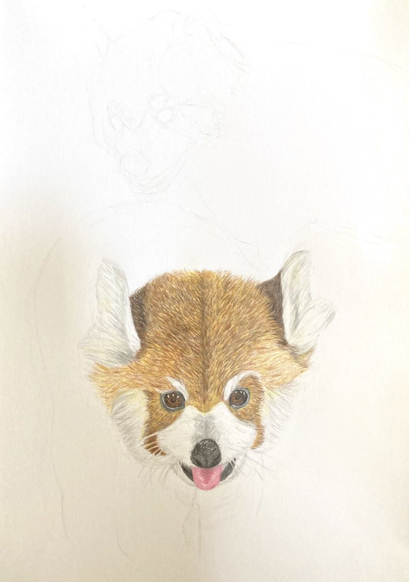 色鉛筆画【 創作途中 】 #色鉛筆 #レッサーパンダ 新しい作品に取りかかりました。 A4サイズの作品になります。 まだまだ雑ですが更にコツコツ描き込んでいきます。