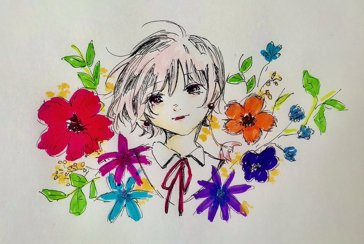 自己紹介というか ジャンルは自創作イラストメインで、他にファンアートやキャラやフォロワーさんのバースデーイラスト、手法はペン画 水彩 アルコールマーカーと色んな画材や画風で描いてます!よろしくお願いします! #2月になったのでフォロワーさんに自己紹介しようぜ
