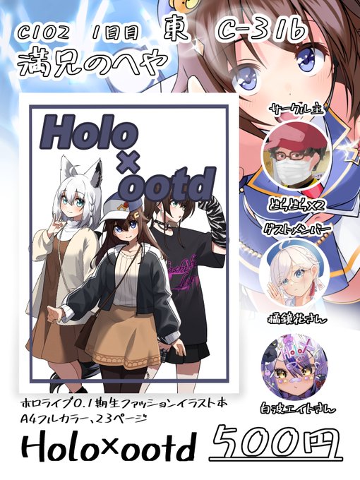 あなたのサークル「満兄のへや」は、コミックマーケット102で「土曜日 東地区 “C” ブロック 31b」に配置されました!コミケWebカタログにてサークル情報ページ公開中です! ホロの0,1期生のイラスト本出します!!!!どうぞよろしくお願いします!!!! webcatalog.circle.ms/Circle/Map/173… #C102WebCatalog