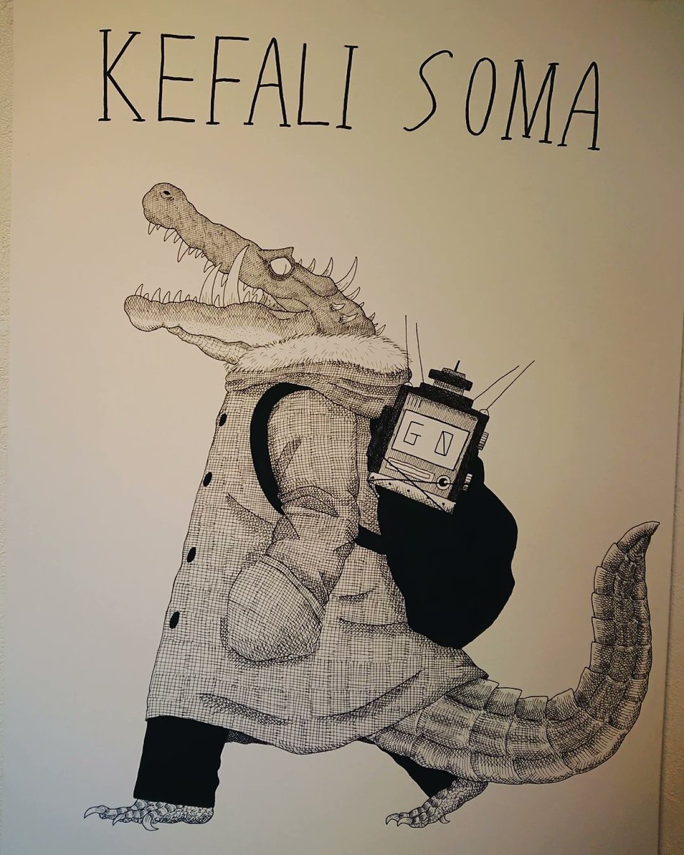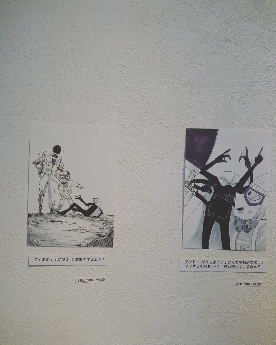 8/9(月) #KEFALI / #SOMA #泡善人 (アブクゼニ) 作家 #我無 さん #村上野中 さん 開催中です。 今日はガムさん1人で頑張って下さっています。 水分補給忘れずに👍 #アート #ペン画 #モノクロ #二人展 #イラスト #谷根千 #七面坂途中 #谷中