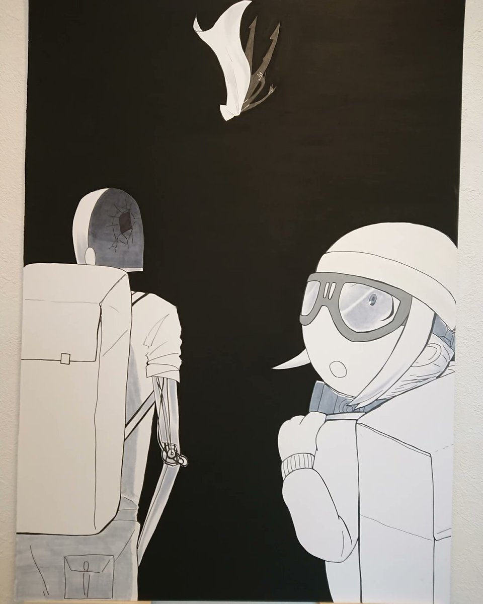 2 5 8/9(月) #KEFALI / #SOMA #泡善人 (アブクゼニ) 作家 #我無 さん #村上野中 さん 開催中です。 今日はガムさん1人で頑張って下さっています。 水分補給忘れずに👍 #アート #ペン画 #モノクロ #二人展 #イラスト #谷根千 #七面坂途中 #谷中 21/08/09 13:57