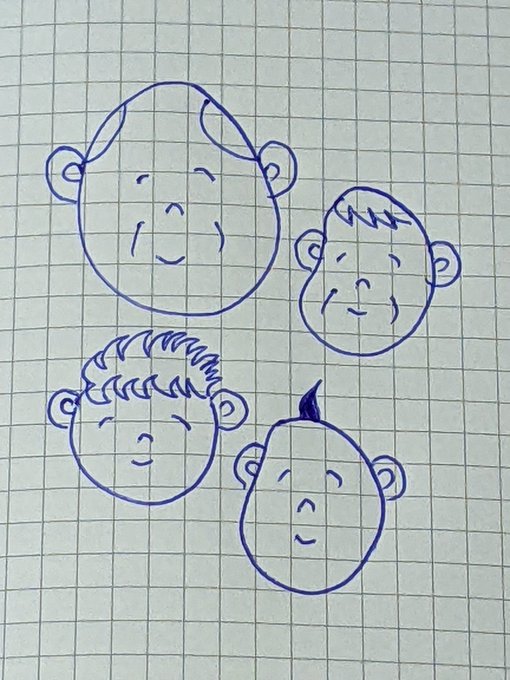 1 0 四人元気! #一日一絵 97日目 #絵 #イラスト #アナログ画 #ボールペン画 23/04/07 02:55