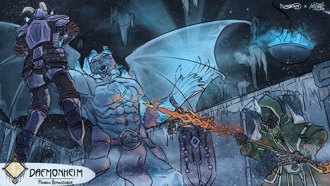 Inktober Day 19: Mobs 3 - Ice Warrior/Ice Giant Both the Forgotten and the Ramokee can appear on any floor, but these guys are the first mobs unique to the frozen floors specifically #inktober #inktober2021 #inktoberday19 #runescape #runescapeart