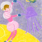こちらもPower in Numbers 7の作品。 今回の展示では普段あまり使わない色やモチーフを選びました💫常に新鮮な気持ちで絵に向き合うためには私の場合定期的にちょっとした変化が必要なようです🦄(周りからするともしかしたらそんなに変わってないかもですが…) #illustration #イラスト