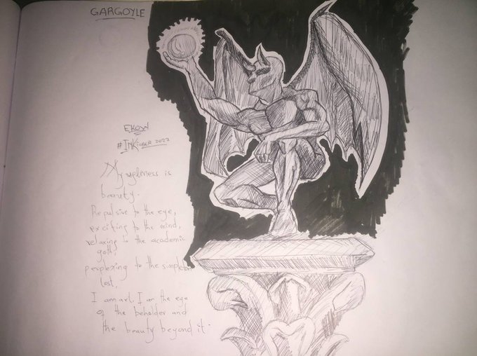 4 14 #inktober2022 #Inktober DAY 1: GARGOYLE pen and alcohol marker on paper 22/10/02 07:10