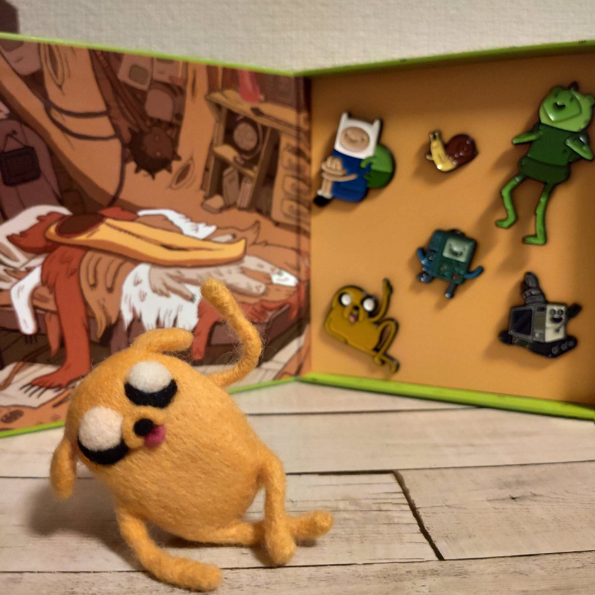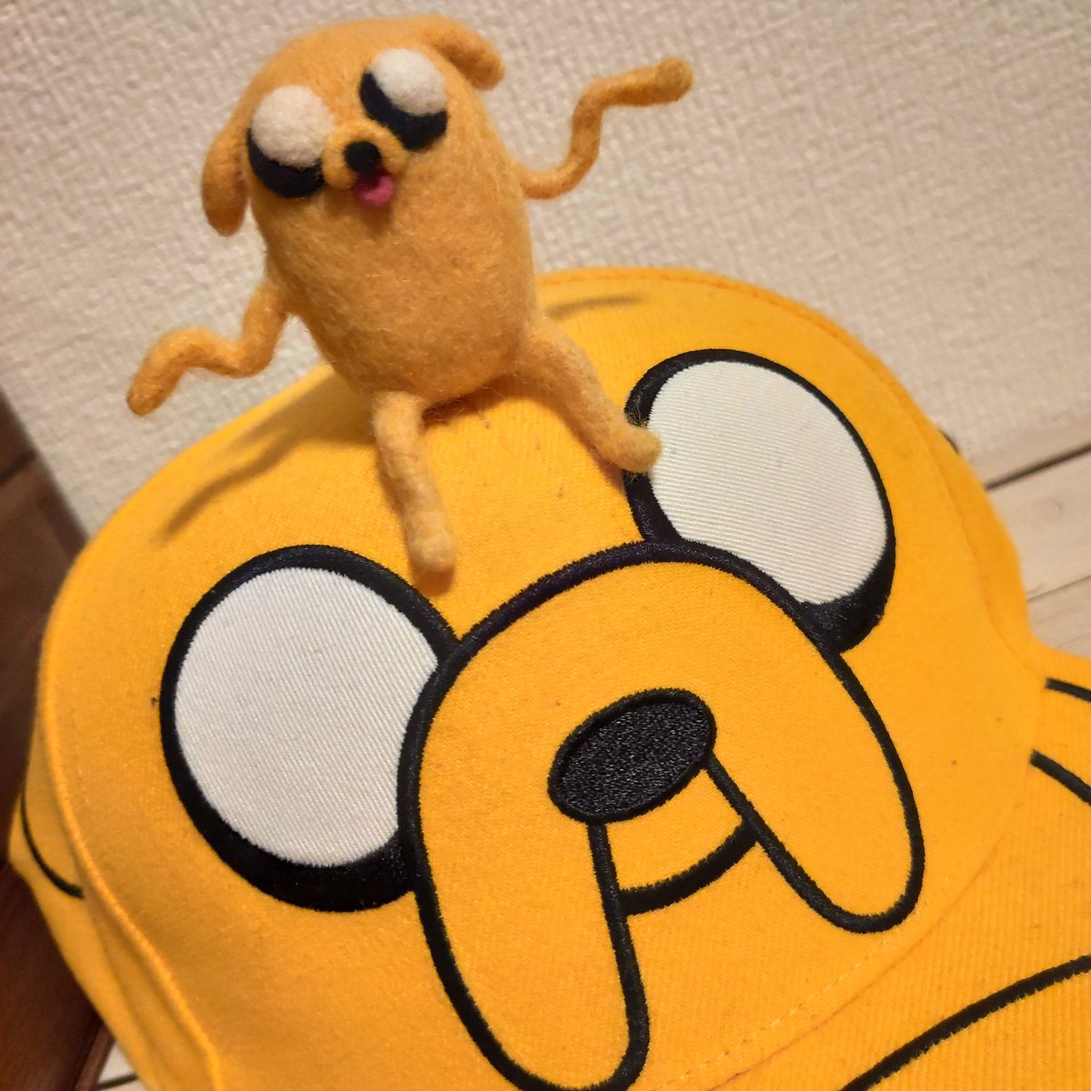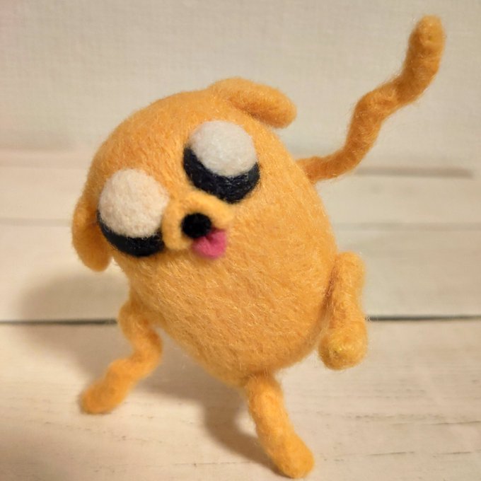 羊毛フェルト3個目 大好きなアドベンチャータイムのジェイクー!!! 手足を動かせるようにしたからいろんなポーズができる🤗 #羊毛フェルト #アドベンチャータイム