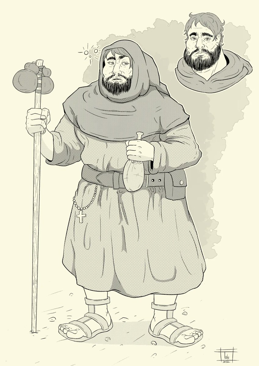 A new character is born! Jon the Friar, a monk looking for the high pleasures of life! #OC #DnD #dndart #DnDcharacter #roleplay #tabletopgaming #blackandwhite #screentone #Commission #commissions #commissionsopen