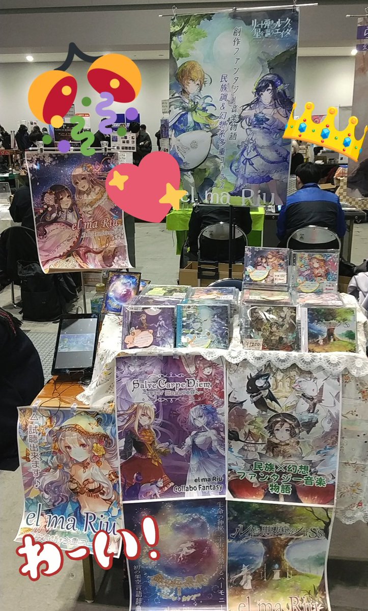 💐 #C102 💐 el ma Riu、設営完了しました!! ✨東3地区“カ-07b✨ 創作ファンタジー音楽物語ですꕤ୭* お誕生日席🫶 ▼お品書き webcatalog-free.circle.ms/m/Circle/17312… ▼試聴 youtube.com/c/elmaRiu フリーペーパーや特典関係もあるのでぜひに!! #C102お品書き #C102WebCatalog