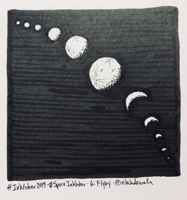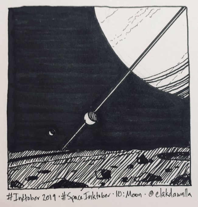 #Inktober2019 #SpaceInktober Day 10: Moon. I jumped the gun on this one, will do the day 9 prompt tomorrow. I just had to do a Saturn subject since yesterday’s “loss of signal” prompt had me in my feels about Cassini. This is Enceladus (closer) and Rhea as seen from Dione.