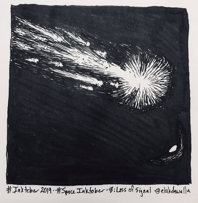 #Inktober2019 #SpaceInktober Day 8: Loss of Signal. This is beloved Hayabusa, who fought through so many trials to return a precious package to Earth, burning up over the Australian desert.