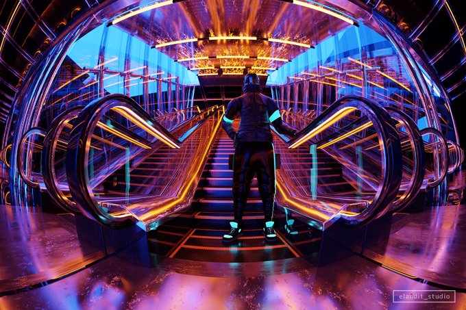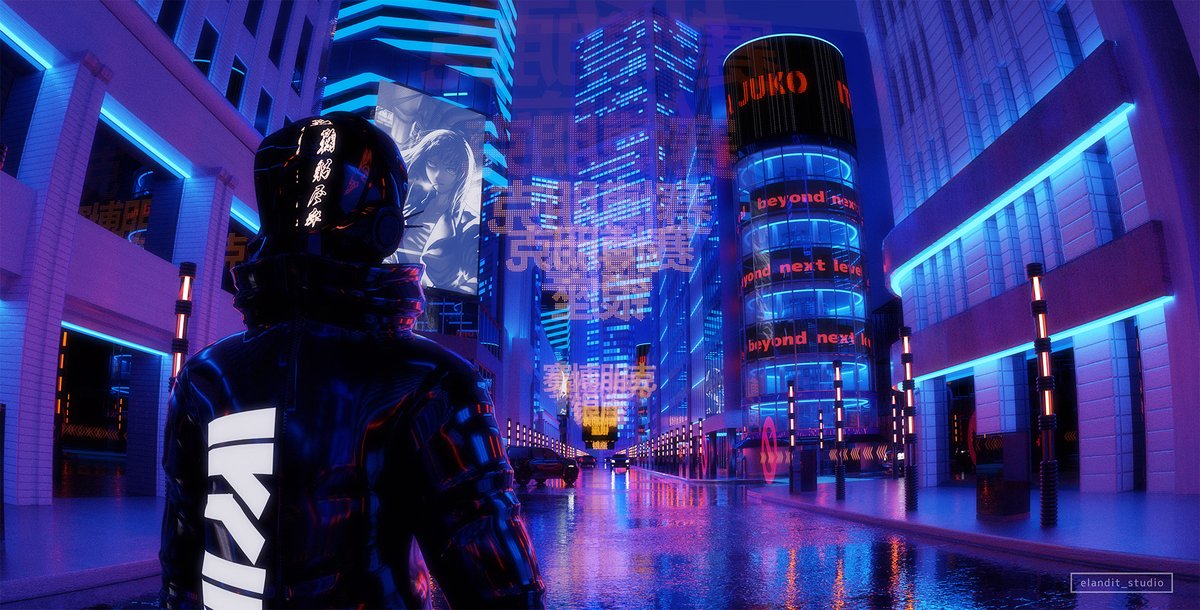 Hello #PortfolioDay ! I'm Elandit, neon cyberpunk 3dcg & illustration creator - using mainly Blender