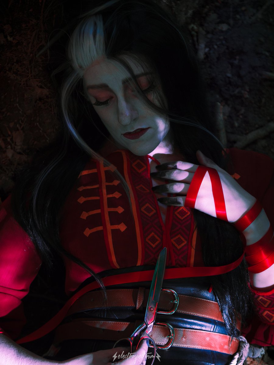 "I think I'm some cross in between life and death. Not totally alive, but not totally dead. I definitely died! I died and then I woke up." Laudna - @xlaurenx Photos - Me Assistant - @woodsmokewords #CriticalRole #CriticalRoleCosplay #Laudna #Cosplay @Marisha_Ray @CriticalRole
