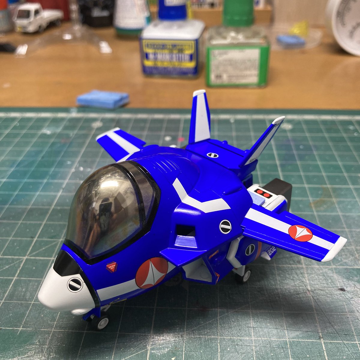 #今月作ったプラモ晒そうぜ ハセガワたまごひこーき VF-1J バルキリー “マックス機" 撮影直後、呪いにより キャノピーが割れました😵 作成ペースが上がらない😑