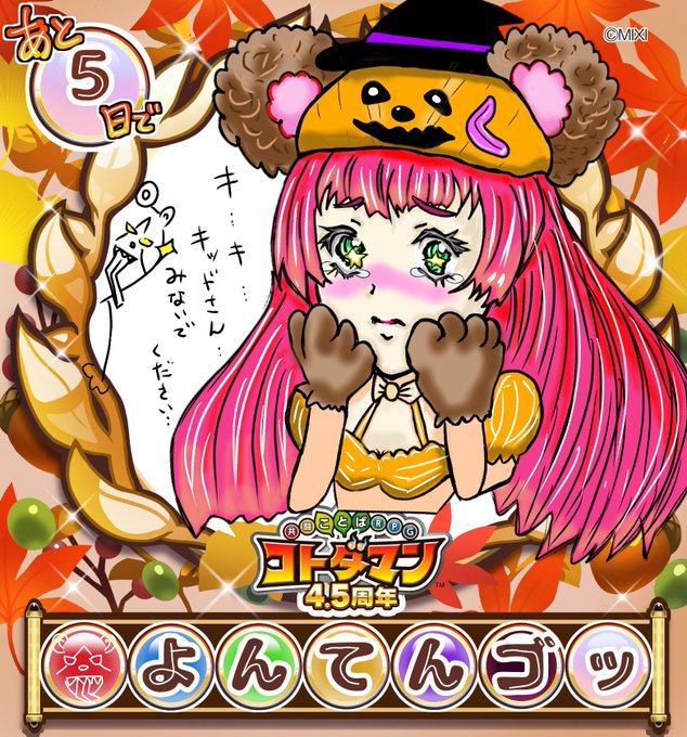 13 53 ㊗️もうすぐ4.5周年おめでとうございます!コトの木の加護や、既存キャラのバージョン違いの登場が楽しみです。 特に今年の水着くまールテンちゃんは、すこでした🐻🏖 コトノ語も面白くて、いつも想像しながら読んでますよん😇🖐ッ! #コトダマン #コトダマンイラスト #コトダマンよんてんゴッ周年 22/10/11 00:00