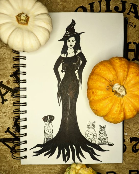 Drawlloween Day 1: Spooky Self-portrait . . . #bigmove #witch #inktober #mabsdrawlloweenclub2022 #drawlloween #drawlloween2022 #spooky #selfportrait #spookyselfportrait #inkdrawing #inkillustration #sharpieart #sharpieillustration #micronillustration #halloweenart #halloween