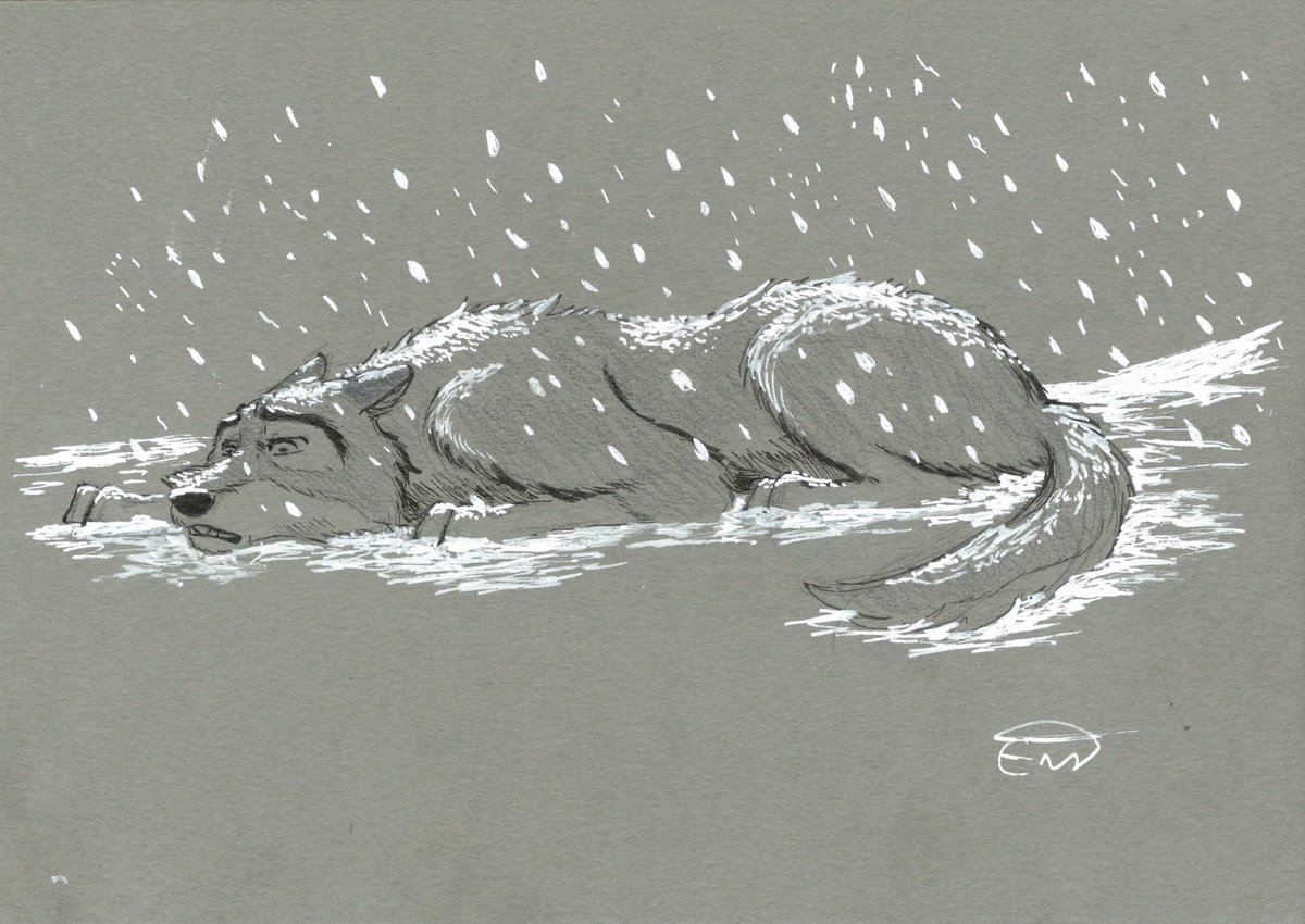 "Exhausted" : Balto ! I was obsessed with that movie when I was a kid. Drawing on a dark paper is awesome ! You have more freedom to draw light effects and snow ! #inktober #inktober2018 #balto