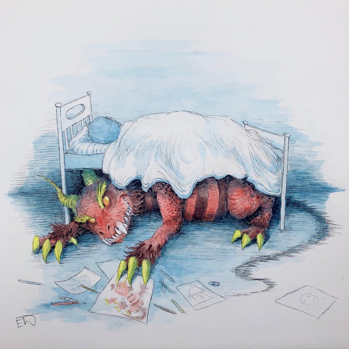 I’m not very active here, but let’s post my first batch of my #smaugust pieces. Now they are scanned! All are done traditionally and edited (more or less heavily) on Photoshop. Prompts by @AllieBriggsArt , @Queenofdrag0ns and @david_lee_art. #Smaugust2021