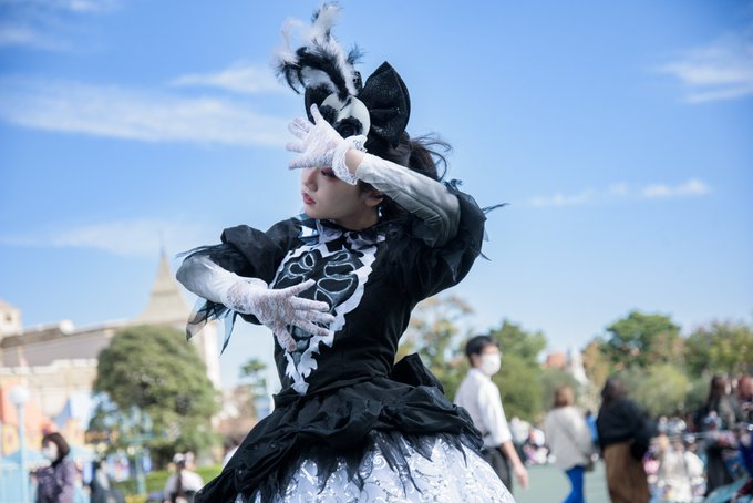 #Dハロ仮装2022 👻Spooky Boo! parade👻 今年もゴスロリダンサーやりました♡ スカートのスパンコール部分を本家と同じ布に出来て大満足です!笑 ダンサーさんに少しでも近づけてたら嬉しい🥲💕 photo by @cyaan_dd
