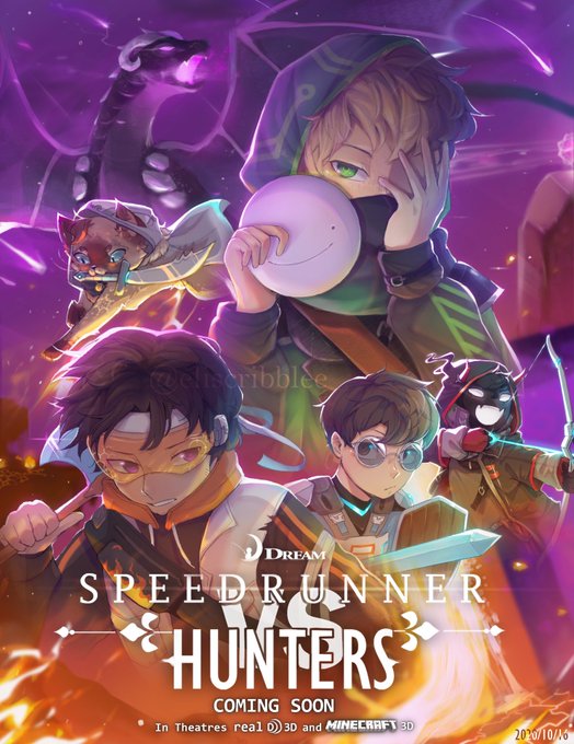 'The Movie' 🍿🎟️⚔️ [Tap to view full cuz twitter cropping sucks] ★★★★★ Probably the most time consuming digital piece I've done in a long while, but YEAA it's done!!✨ #minecraftmanhunt #dreamfanart #sapnapfanart #georgenotfoundfanart #badboyhalofanart #antfrostfanart