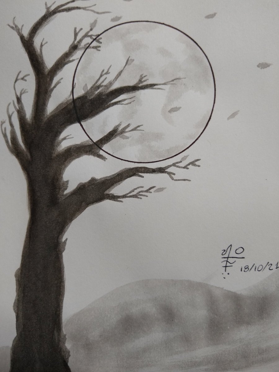 Además de ser agente de seguros también me gusta dibujar ... hace años que no lo hago y ya tiene tiempo que quería experimentar con la tinta china. Noches de otoño. #inktober2021#inktobermexico#inktober#luna#moon