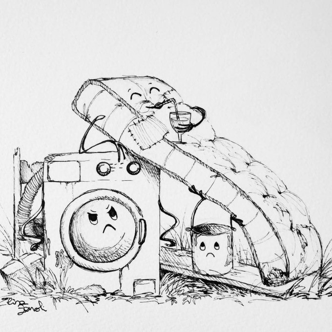 Terzo giorno di #inktober! 🔸Il tema di oggi è #bulky ... Così ho pensato a degli ingombranti che si ingombrano 🤔 (e che non vorremmo mai vedere, ma che invece incontriamo troppo spesso lungo le nostre strade 😞) @inktober #inktober2020day3 #inktober2020 @inktoberitalia