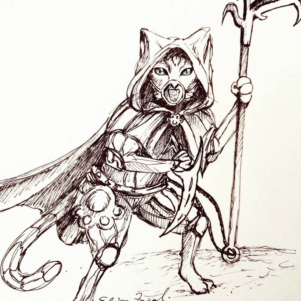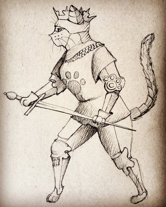 Seventh #inktober2020 day! Today's theme is #FANCY! And of course #Marozzo immediately came to my mind! And well, from Marozzo to a #Spadone wielding #Cat the gap has been quite short! #inktober2020day7 #inktoberfancy #historicalfencing #hema @inktober #inktober