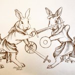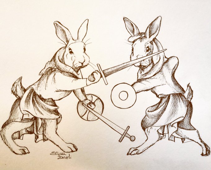 @Inktober, day 23! Today's theme is #rip 🐰Monk Lepus snatched the pupil's sword from his paw! Today's # hemanimals is inspired by the MS. I.33, the oldest fencing treatise to date ❤️ #inktober2020 #inktober2020day23 #inktober2020rip #swordandbuckler #msi33 #i33 #hema #medieval