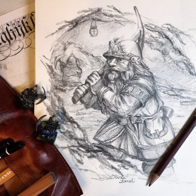 @inktober day 24 - today’s theme is #Dig ⛏️ So hearing at the mythical @windroseband and inspired by a #Warhammer minis... I ended up drawing this #dwarf, which obviously is in search of gold and gems! ✨ #inktober2020 #inktober2020dig #warhammerfantasy #dwarfart #miniature