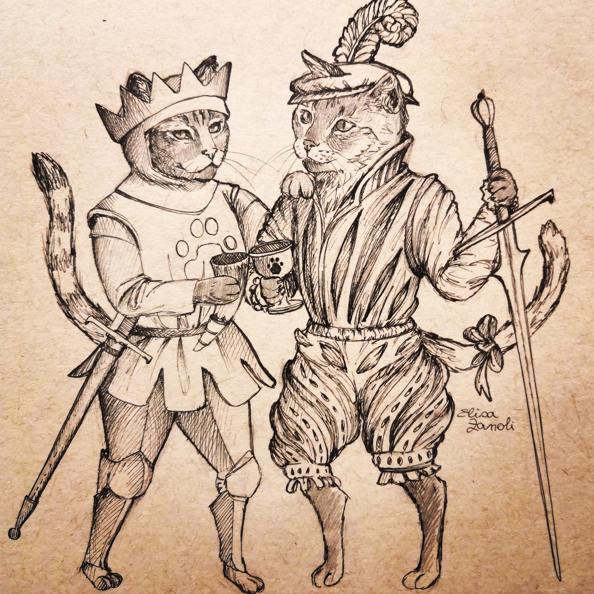 ✒️ @Inktober day 25! Today's theme is #buddy 😺 Who wouldn't want to have a nice drink with the #hemacats Fiore and Mawrozzo? 🍻 #hemanimals #historicalfencing #hema #inktober2020 #inktober2020buddy #inktober2020day25 #spadone #sword #CatsOfTwitter #cats #ink #inktober #medieval