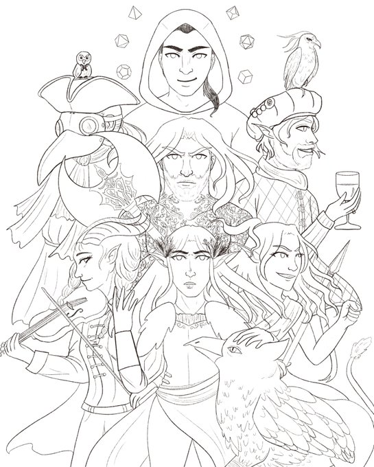 The Feathers 🪶 - WIP Currently working on this piece of our D&D party, The Feathers ❤ I'm planning to add D&D party commissions with the next shop update, Single/couple character commissions are available through my Etsy shop, link in the bio ⭐ #dndparty #dndart #dndartwork
