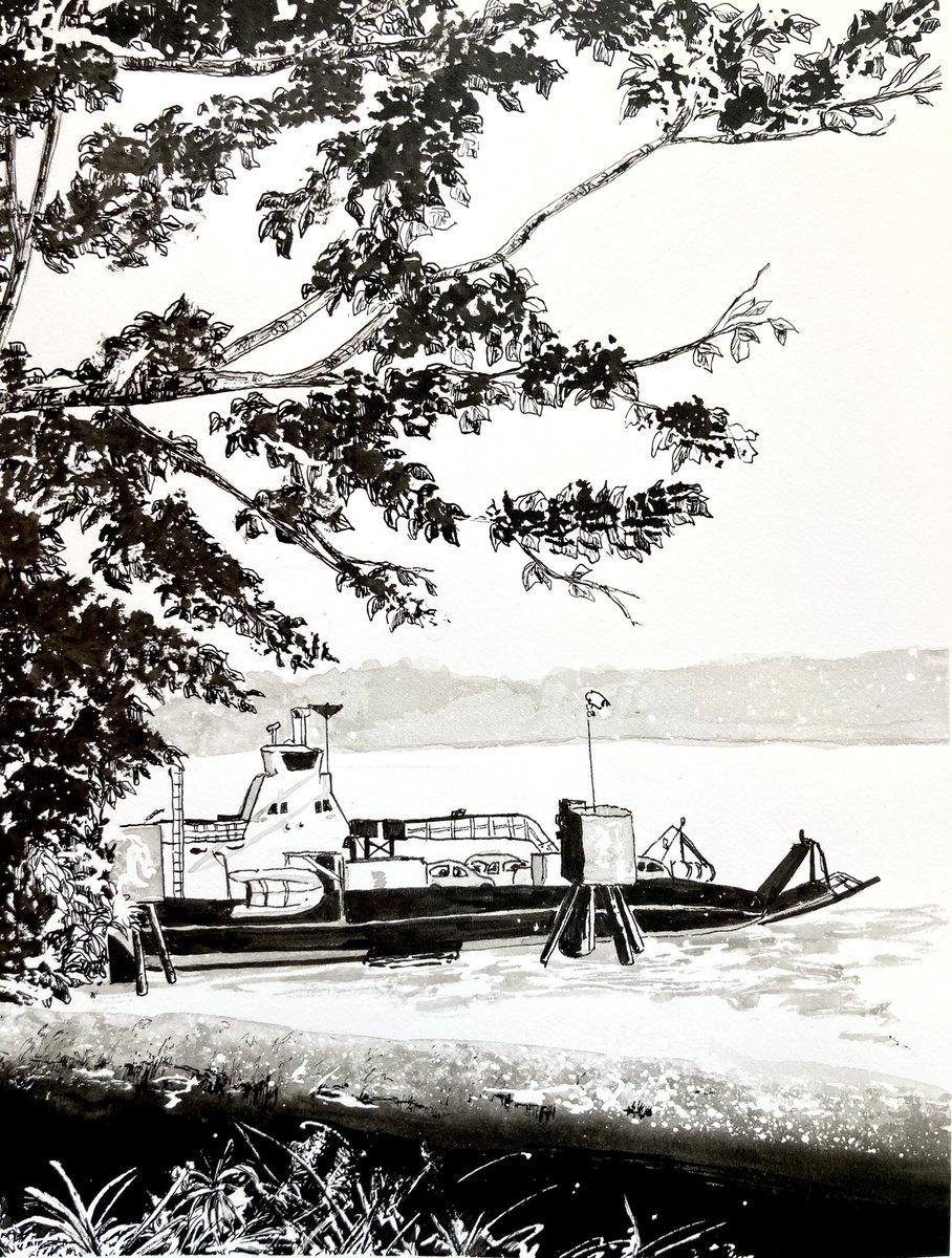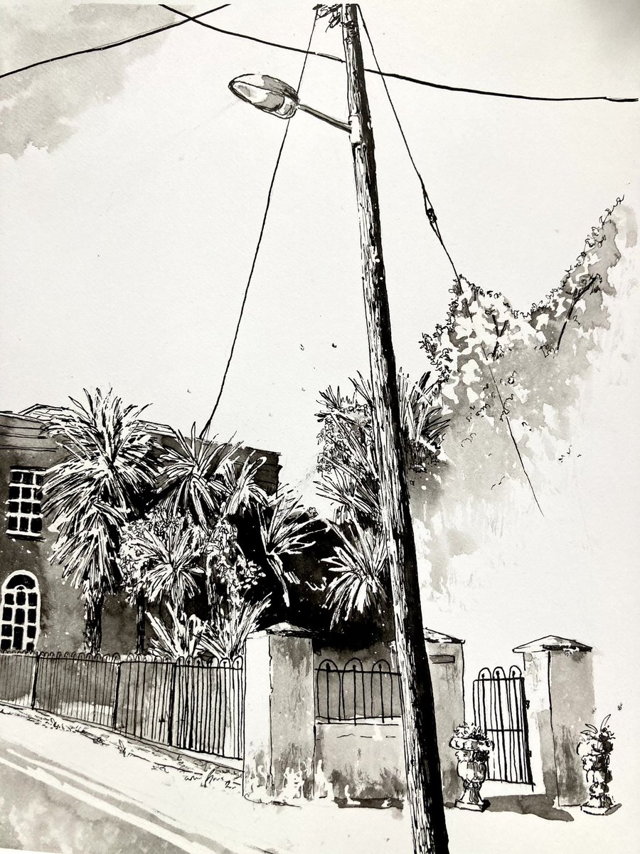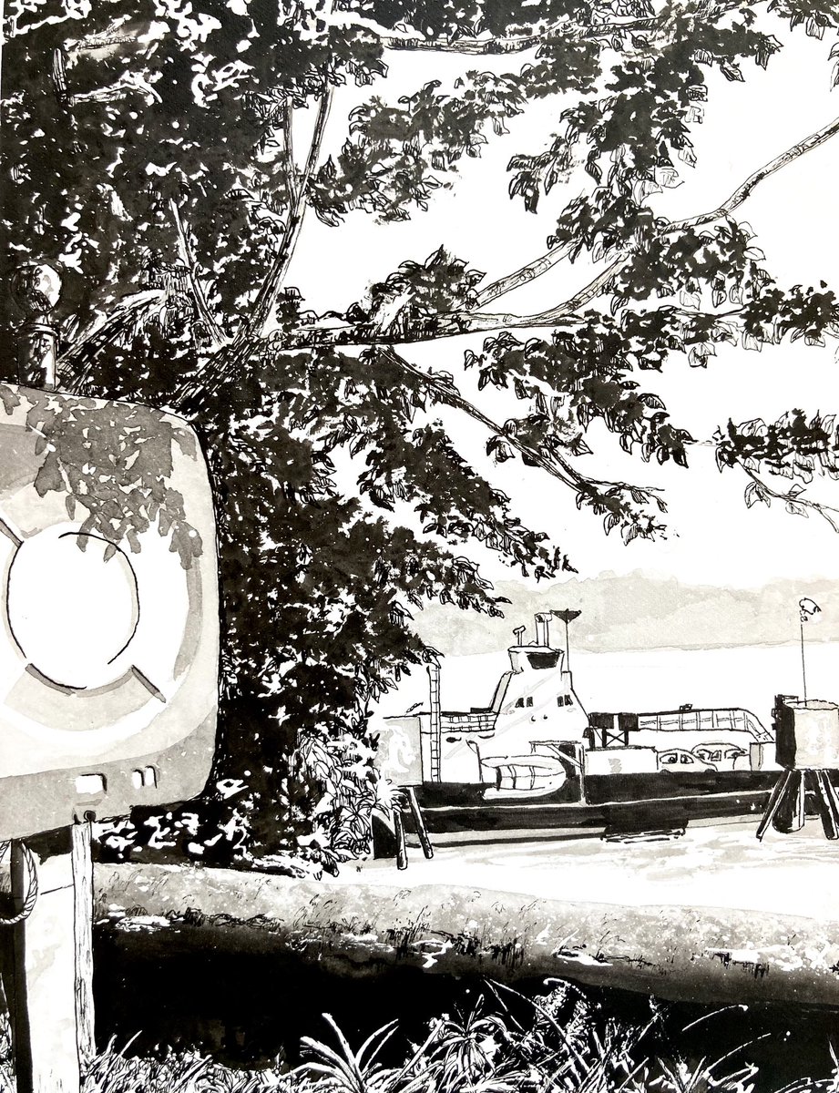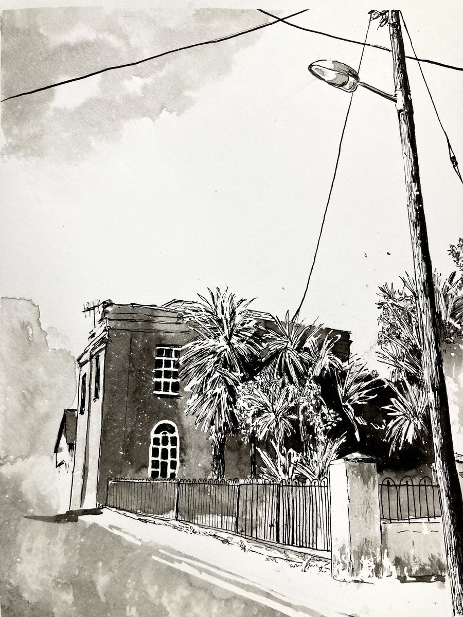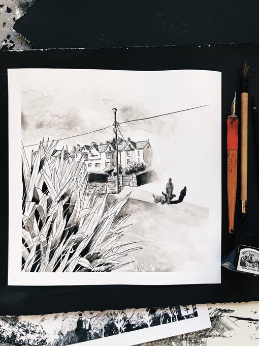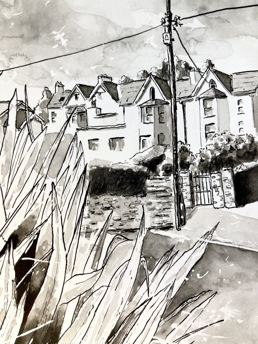 Day 06/15 #inktober2022 View of Hazelhurst Gallery #corkart #corkcity #irishlandscape #landscapeart