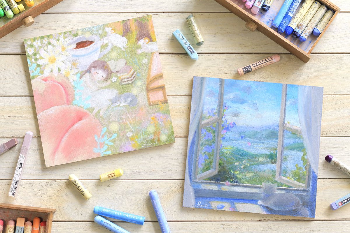 #ゴールデンウィークSNS展覧会2022 いとおしいものたちに 「あした」への願いをこめて、 ひとつずつ 大切に描いています オイルパステルで コルクに描いた作品がメインです🖍 いろいろな色の絵を描いていますが、 きょうは雨上がりの青空が きれいだったので 青っぽい作品を集めてみました💙