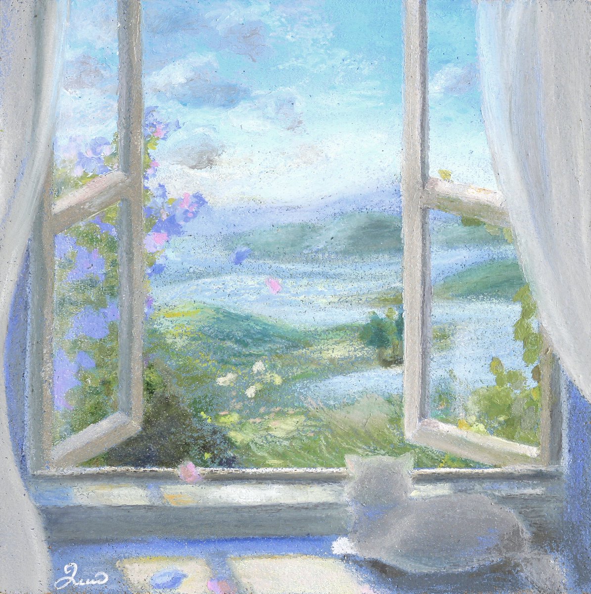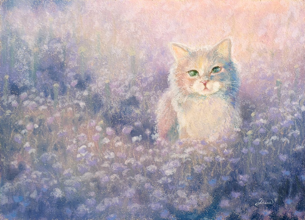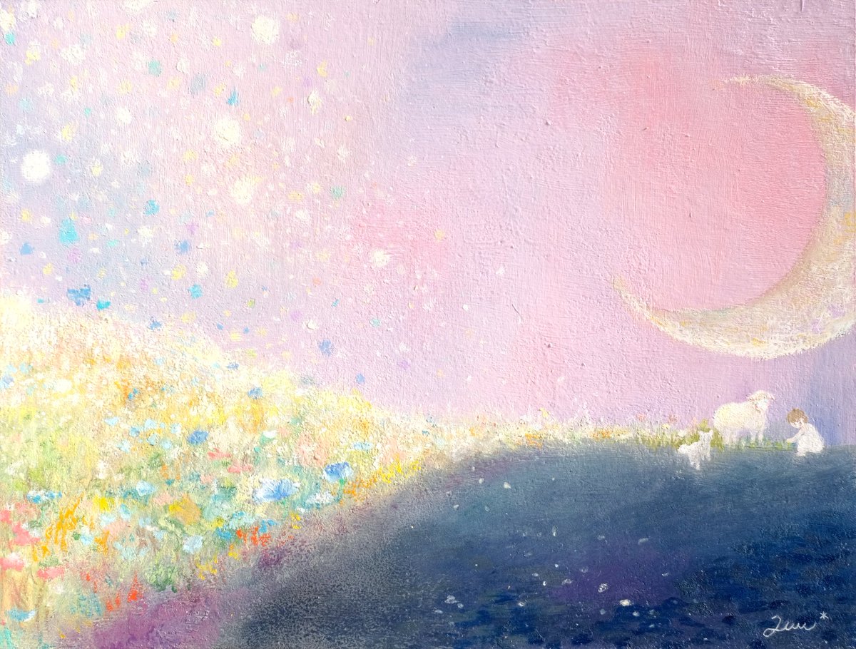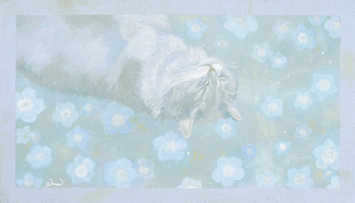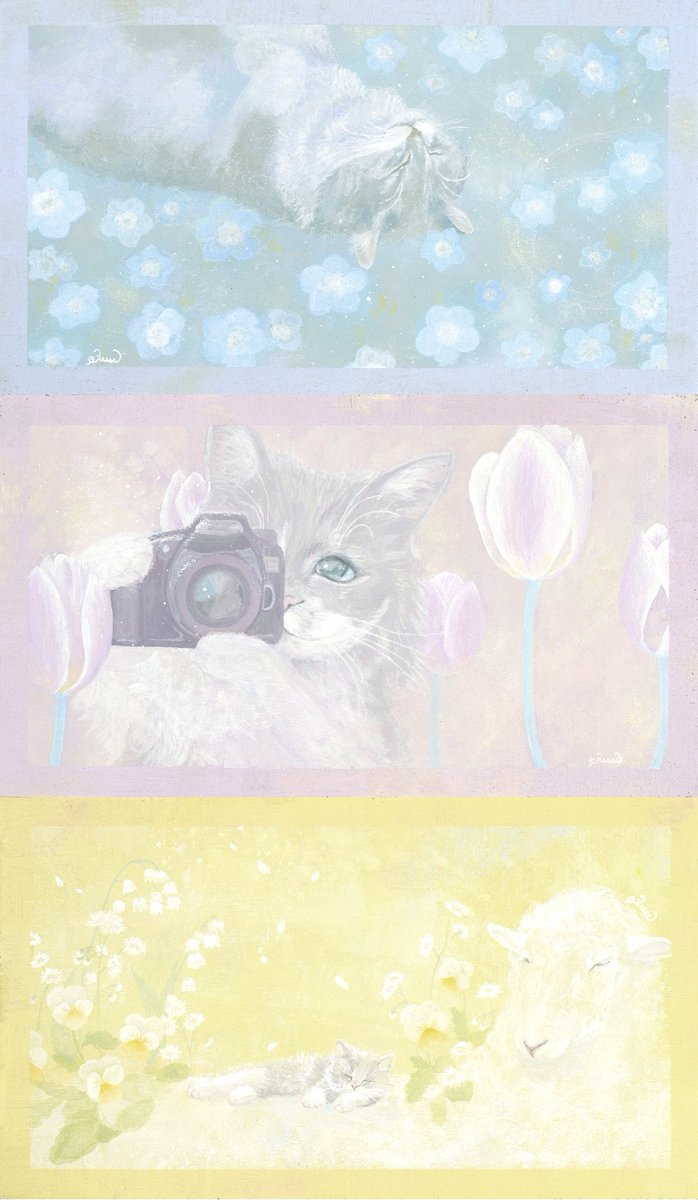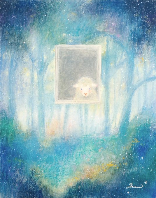 春のような絵を 描きたいのかもしれない、と ときどき思います 光のあたたかさ、 あまくて清潔な香り、 そしてだいすきなものたち🌼🐈🐏 #2021年年末に今年まだ出会ってない素敵な作品に出会うタグ すてきなタグなので わたしも参加してみます…!