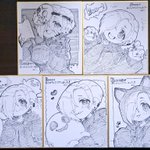 アナログ絵苦手マン、小梅ちゃん色紙お礼に描きました。梱包してからランダムで住所書いたので誰にどれが届くのかは自分も分からない