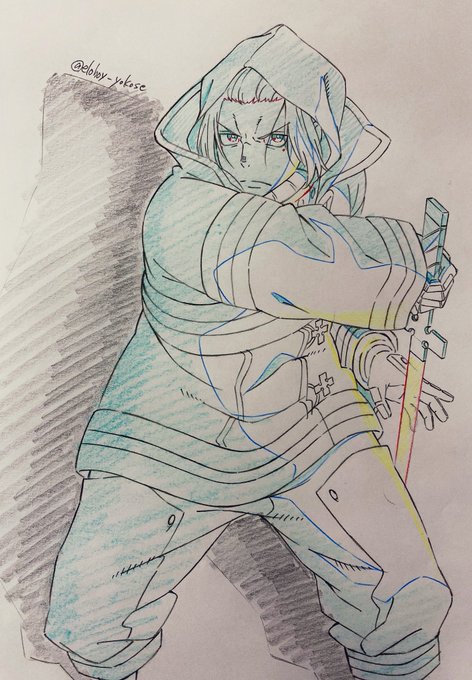 お題箱から 「アーサー・ボイル」 前回のお題で消化にしようと思ってたけど複数いただいてたのでもう1枚描いたやつです! アーサーの防火服にフード被るスタイル可愛くて好き #炎炎ノ消防隊 #FireForce