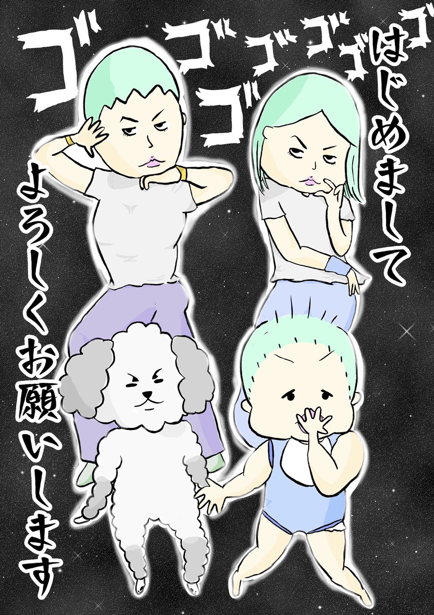 改めまして自己紹介です。 ジョジョ立ち風で🤟 よろしくお願いします😌 #子育て漫画 #育児漫画 #マンガ #漫画 #ジョジョ立ち #0歳児 #ママ垢さんと繋がりたい #犬好きさんと繋がりたい #犬好きと繋がりたい #トイプードル