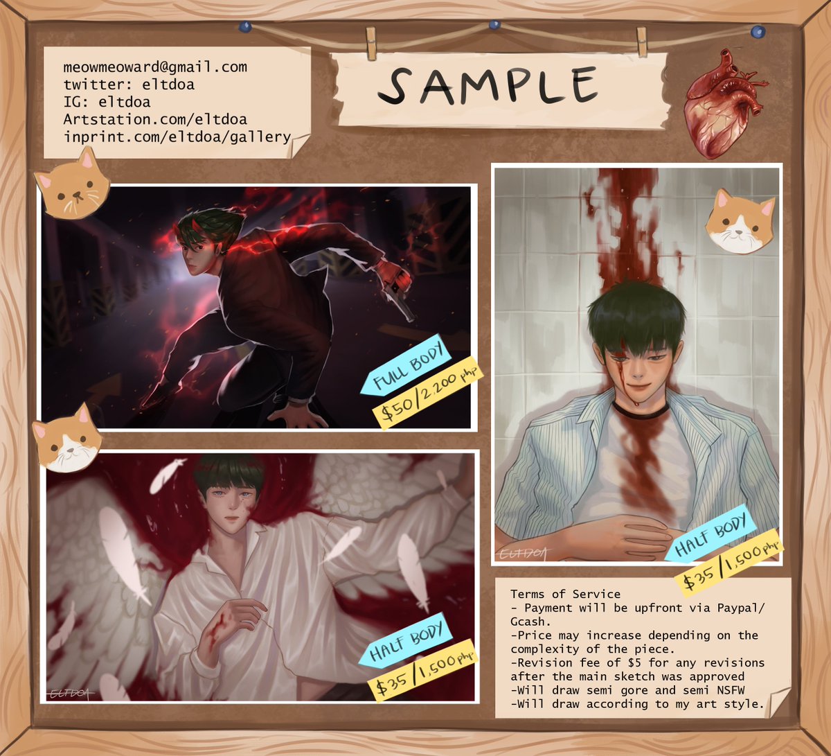 Hello! My commissions are open! I lowered my price a bit! Dm or email me if you're interested. meowmeoward@gmail.com #artph #ArtistofSEA #Commission